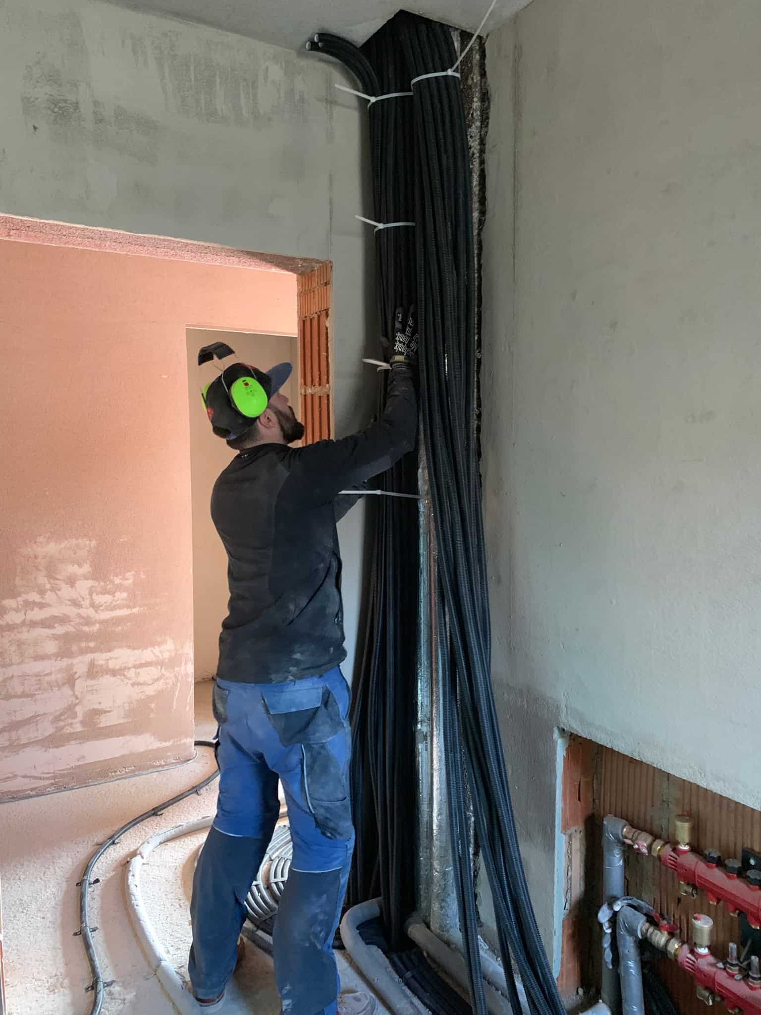 „Ich war als technikaffiner und handwerklicher geschickter Bauherr auf der Suche nach einem kompetenten Ansprechpartner, der mich bei der Verwirklichung einer KNX-Elektroinstallation unterstützt. Ich hatte mich vor unserem Haus nicht mit der Materie auseinandergesetzt, sodass ich an mehreren Stellen Unterstützung benötigte. Der Wunsch war eine kostenoptimierte do-it-yourself Lösung für dieses komplexe und damit meist kostenintensive Gewerk zu finden. Unser Ziel war es die Funktionen Heizungssteuerung, Verschattung, Licht und Sicherheit zu verknüpfen und durch Logik weitere Alltagsfunktionen zu integrieren bzw. vorzuhalten. Mainsmarthome hat uns von der Planung (Funktionen, Komponenten, Logik) über die Ausführung (Leerrohrpläne, Schlitzpläne, Verteilerplanung und –Bau, Lichtplanung) bis zur Inbetriebnahme begleitet.