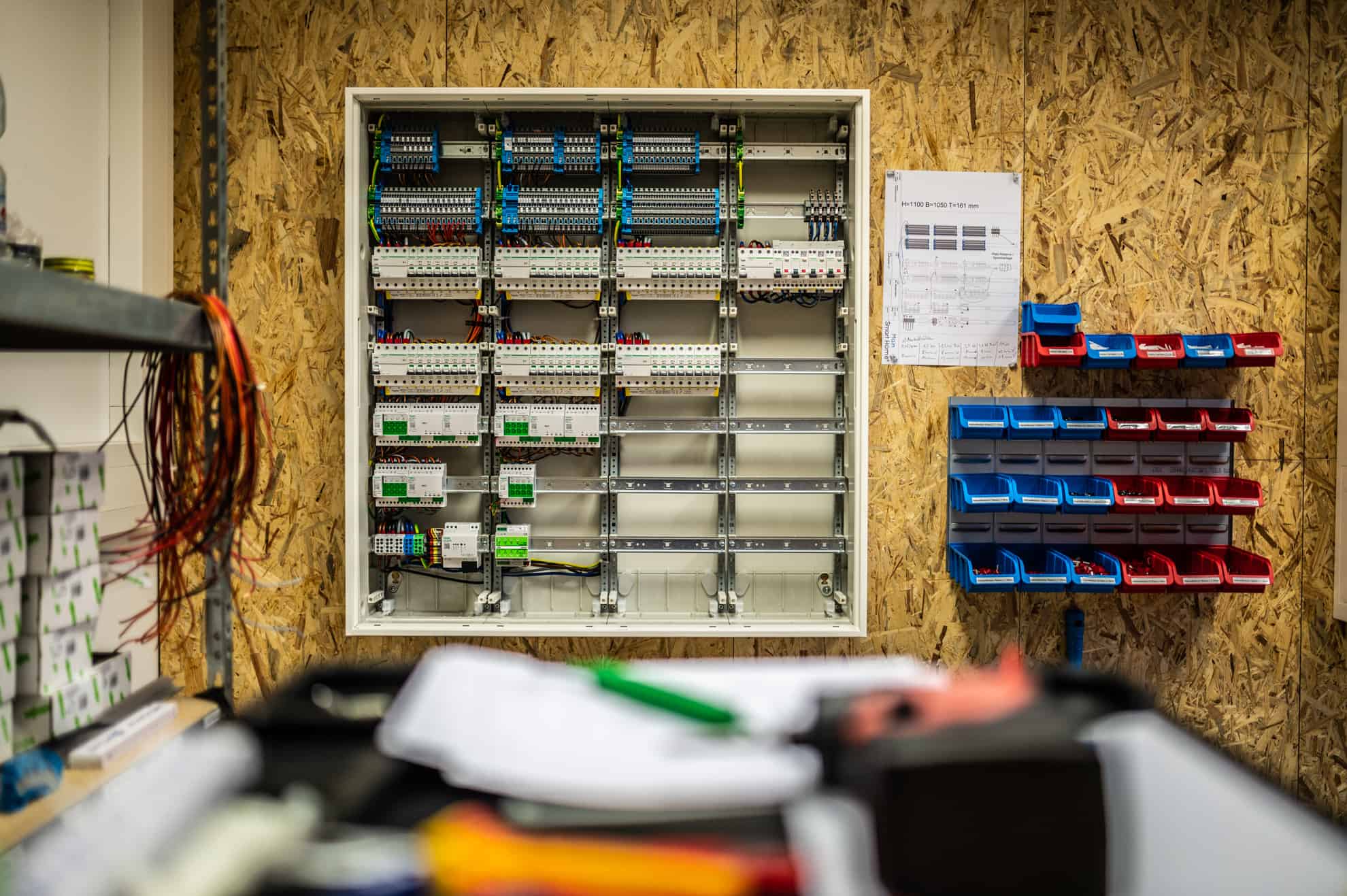 Der KNX Verteilerschrank ist das Gehirn des Hauses, alle Informationen kommen hier an, werden verarbeitet und weitergeleitet. Es ist die Königsdisziplin jedes Elektromeisters und eine komplexe und daher für den Bauherrn oft kostspielige Angelegenheit.